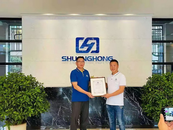 双宏化工董事长徐建成授牌给公司总经理李朝辉并合影留念!