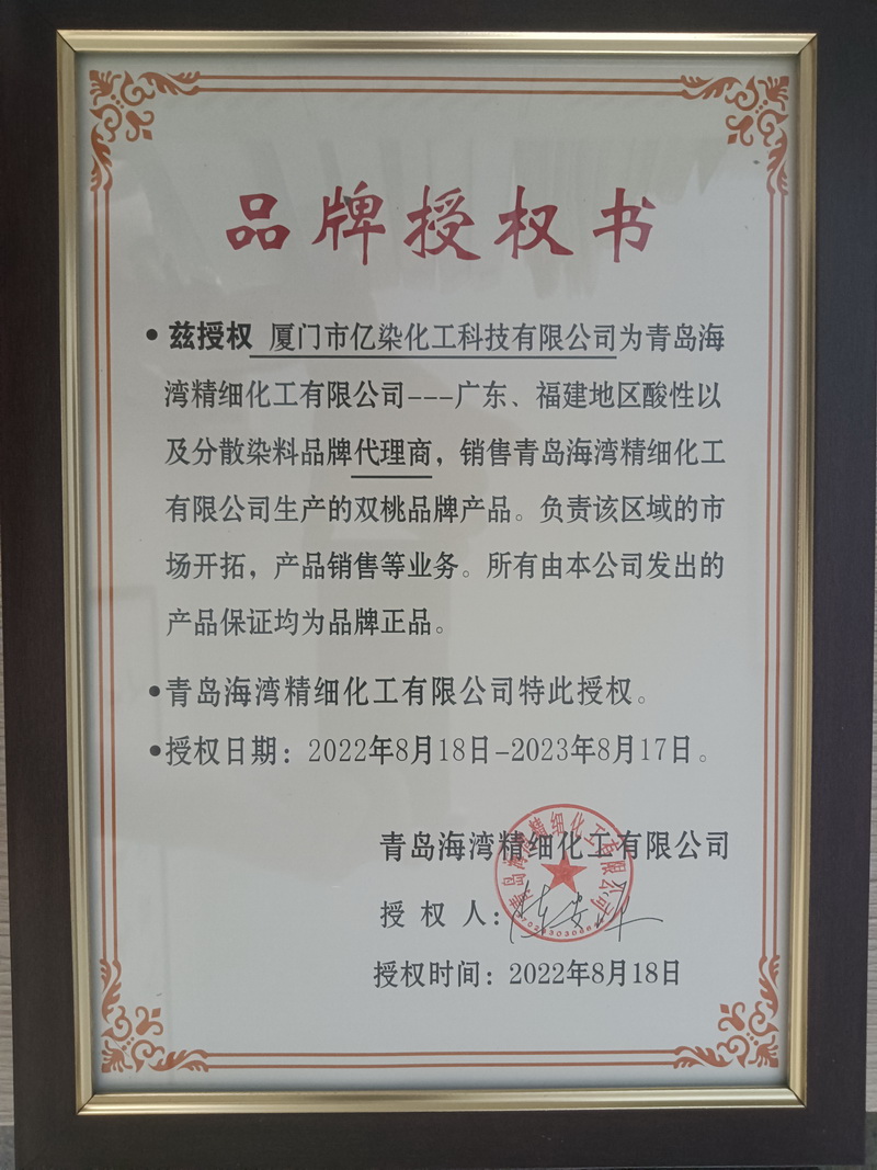 与青岛海湾精细化工有限公司总经理陈安源签约双桃品牌广东、福建地区总代理品牌授权书!